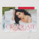 Annoncez votre diplôme de fin d'études secondaires ou collégiales avec ce faire-part moderne. Le faire-part de graduation affiche "Graduate" en lettres rouges tendance avec l'année de graduation affichée à l'intérieur de la lettre 'd'. Personnalisez l'avant du faire-part avec la photo horizontale, le nom et l'école du diplômé. Le faire-part s'inverse pour présenter une photo supplémentaire avec de l'espace pour votre faire-part/message personnalisé.