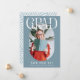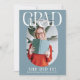 Annoncez votre bonne nouvelle avec cette carte de remise de diplôme moderne et élégante. Le design présente un fond sarcelle poussiéreuse qui peut être changé en n'importe quelle couleur, un lettrage GRAD élégant, le nom du diplômé en écriture de signature en haut, une photo ovale, un message personnalisé, le diplôme, l'établissement d'études et l'année de promotion.