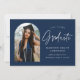 Faire-part tendance de remise des diplômes avec la photo du diplômé encadrée par un arc de marine avec "Graduate" dans une écriture manuscrite blanche. Personnalisez l'avant de la carte de faire-part de remise de diplômes en arc en ajoutant le nom du diplômé, l'année de remise de diplômes, le nom de l'école et les plans futurs. La faire-part de graduation de la photo s'inverse pour afficher un motif en pointillés blanc et marine. Le faire-part convient aussi bien aux diplômés du secondaire qu'aux diplômés du collégial.