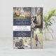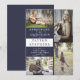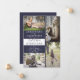 Pour un look élégant et simple, choisissez ce style de bloc de couleur bleu foncé et blanc moderne, conception d'annonce de diplômé avec quatre photos sur le devant par Holiday Hearts Designs. Remplacez simplement les photos par celles de votre diplômé et ajoutez ses informations (nom, école, année et date de remise des diplômes). Le verso présente un fond bleu foncé uni.