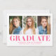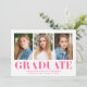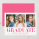 Célébrez le jalon de votre diplômé avec ces annonces minimalistes de graduation, présentant trois de leurs meilleures photos et des lettres "Graduate" roses chaudes. Ce design moderne et dynamique offre une façon amusante et élégante d'annoncer leur réalisation. Personnalisez le faire-part en ajoutant le nom du diplômé, le nom de l'école et l'année d'obtention du diplôme pour une touche vraiment unique. Parfait pour les diplômés du secondaire et du collégial, ce design multi-photo est un moyen attrayant et mémorable de partager leur succès avec des êtres chers.