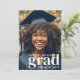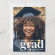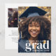 Annoncez la remise de diplômes de votre étudiant avec ce faire-part moderne de graduation avec 2 photos. Le devant de la faire-part a une photo de fond couvrant le faire-part avec un texte moderne qui explique "grad", le nom de votre diplômé et l'année de classe. Le dos de la faire-part a un 2ème modèle photo avec un modèle de texte à personnaliser avec le texte désiré.