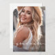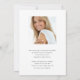 Cette classe de graduation 2023 simple et élégante dit "diplômé" en écriture moderne délicate, blanche et élégante avec votre photo personnelle préférée devant la carte. Plus d'informations sur la grade peuvent aller sur le dos, avec un design minimaliste noir et blanc.