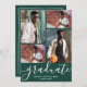 Ajoutez vos quatre photos préférées à l'avant de ces invitations à la fête de remise des diplômes mettant en vedette les diplômés et la classe de en lettrage chic sur un arrière - plan couleur vert foncé de l'école. PLUS de dessins et de couleurs réalisés dans notre magasin, y compris les invitations, enregistrer les cartes de date et les cartes postales.