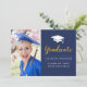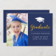 Faire-part d'invitation de la Faire-part de la Marine Blue and Gold Photo Graduation Party. Cette invitation est parfaite pour une Classe de Graduation 2023 Faire-part cherchant à célébrer dans le style. Le faire-part de graduation comprend un casquette diplômé blanc et vous permet d'ajouter votre propre image, de mettre à jour votre classe de, nom et emplacement de la fête. Veuillez contacter le concepteur pour les articles customisés correspondants.