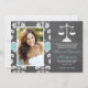 Ajoutez votre image de photo ou de favori à ces annonces et invitations rustiques et jolies d'obtention du diplôme d'école de droit de dentelle de damassé de style de tableau avec des échelles de justice dans un style d'illustration de regard de craie et une conception imprimée de regard de ruban piquée par aqua bleu-clair. Customisez-le pour dire celui que vous vouliez sur l'arrière et avant du faire-part d'obtention du diplôme de diplômé d'avocat et invitiez. © Chrissy H. Studios, LLC d'illustration. Tous droits réservés.