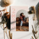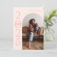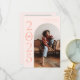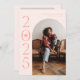 Carte de faire-part de remise de diplômes design et moderne à envoyer à la famille et aux amis. Il y a un cadre en arc rose vif autour de votre photo. Vous pouvez ajouter une deuxième image au verso et le message est modifiable. L'année est écrite sur le côté avec une illustration d'un plafond de graduation à l'intérieur du nombre zéro.