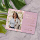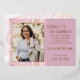 Unique et tendance feuille d'or rose félicitations diplômé faire-part et fête de célébration carte d'invitation, avec un vintage rétro corail rouge, saumon orange et rose rose rousse rayures ondulé arrière - plan. Avec la possibilité de customiser ou de personnaliser avec une photo, le nom du diplômé, l'année de graduation de la classe, le lycée, le futur nom du collège ou de l'université, et l'information de fête de fête. Faites savoir à la famille, aux amis et aux voisins qu'il y a un heureux diplômé prêt à conquérir le monde, et invitation tout le monde à venir célébrer l'heureux événement avec vous !
