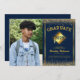 Célébrez la classe de 2025 dans un style et une élégance inégalés avec notre carte de faire-part de graduation bleu marine. Ce chef-d'oeuvre moderne est orné d'une superposition brillante de parties scintillant en or, capturant une image mémorable du nouveau diplômé. La carte met en évidence avec élégance le nom du diplômé et ses aspirations futures, ainsi qu'un tableau de bord avec l'année de classe évoquant un sentiment de réussite et de fierté. C'est plus qu'une carte - c'est un gardien qui saisit une étape clé dans la vie d'un diplômé.