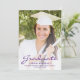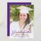 Faire-part moderne de graduation avec une photo verticale personnalisée. Le mot "Graduate" apparaît dans le script violet, avec le nom du diplômé, l'école et l'année de graduation ci-dessous dans la police sans serif. Remplacez facilement l'image de l'échantillon par la photo de votre diplômé. Un écran de dégradé blanc permet de s'assurer que le texte s'affiche. Ajoutez des détails sur les réalisations de votre diplômé et les plans futurs au verso en blanc sur un arrière - plan violet solide. Idéal pour obtenir un diplôme d'études secondaires ou collégiales.