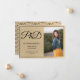 Un faire-part photo vertical pour un doctorat. Cette conception a des lettres noires avec le mot PhD dans une police de script et un ton or (non-feuille) arrière - plan (le papier est actuellement réglé sur un type de papier plus brillant pour donner plus d'importance à ce ton or). La photo est un modèle qui est censé être échangé pour le vôtre. Tous les mots peuvent être customisés. <i>Photographie © Storytree Studios, Stanford, CA</i>