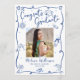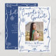 Soyez fier, réjouissez-vous et mettez en valeur cette étape importante de votre diplômé préféré ! Envoyez cette carte d'annonce de photo collage personnalisée, fantaisiste, fantaisiste, simple et moderne pour un événement inoubliable. Une typographie de script manuscrite bleue marine amusante et des gribouillages de croquis d'icône de graduation dessinés à la main, ainsi que votre photo personnalisée, se superposent sur un fond blanc minimal. Au verso, des gribouillages dessinés à la main blancs et votre texte personnalisé se superposent sur un fond bleu marine. Personnalisez le texte personnalisé avec la photo de votre diplômé, son nom, son école et son année de promotion au recto. Ajoutez votre note personnelle, l'école suivante qu'elle fréquentera, les informations sur la fête, etc. au verso. Des invitations assorties, des cartes de remerciement, des décorations de casquette, des serviettes, des assiettes et d'autres cadeaux de fin d'études sont également disponibles dans cette collection tendance et élégante. Garantit