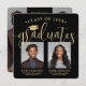Faire-part Double Graduation 2 Grads & 4 Photos Black & Gold