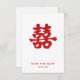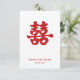 Le caractère chinois "Double Bonheur" orthographié xi ou "hsi" en mandarin et prononcé "shuang-xi" est un caractère chinois bien connu utilisé traditionnellement dans les mariages chinois comme symbole d'amour, de bonheur et de chance pour le couple nouvellement marié. La couleur rouge est une couleur de bon augure ainsi qu'une couleur populaire dans la culture chinoise. Elle symbolise la chance, le bonheur et la joie. L'utilisation de polices contemporaines complète le design. Un design véritablement adapté à toutes les célébrations de mariage chinois.