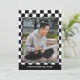 Félicitations unique et tendance carte de faire-part diplômée avec un drapeau de course noir et blanc classique chèques motif. Avec la place de customiser ou de personnaliser avec une photo, le nom du diplômé, l'année de diplôme de classe, le lycée et le futur nom du collège ou de l'université. Faites savoir à la famille, aux amis et aux voisins qu'il y a un heureux diplômé prêt à conquérir le monde, et invitation tout le monde à venir célébrer l'heureux événement avec vous !