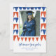 Un faire-part moderne de remise de diplômes pour célébrer une étape spéciale! Cette conception de faire-part de graduation comporte des drapeaux de jonction rouge et bleu aquarelle et un espace réservé pour votre photo. © 2021-Présent | L'Olive tacheté™ | Tous droits réservés.