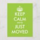 Drôle, gardez calme en déplaçant carte postale pour la nouvelle maison. Faites votre propre drôle de garder le calme et continuer le design parodique pour votre nouvelle adresse. Maintenir l'humour pour la maison et les affaires. Changez la quantité pour obtenir le prix le moins cher par carte postale. Texte personnalisé à l'arrière. Couleur vert pomme.