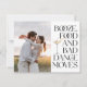 Préparez vos invités pour une soirée inoubliable avec notre Funny Photo QR Code Wedding Save the Date! Cette date unique et amusante comporte une bague en verre de champagne et l'expression fantaisiste "Booze, Food, and Bad Dance Moves", qui donne le ton parfait pour une fête joyeuse. Personnalisez l'avant avec votre photo préférée, tandis que l'arrière comprend tous vos détails mariages en plus d'un code QR pratique qui donne directement accès à votre site Web mariage. Avec son design ludique, ce Save the Date est idéal pour les couples qui cherchent à garder l'atmosphère légère et joyeuse. Vos invités peuvent facilement scanner le code QR pour plus d'informations sur votre grand jour, transformant cette invitation en un aperçu passionnant des festivités à venir!