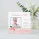Elégante fleur de cerisier rose photo célébration de la vie mémorial annonces, invitation et insérer modèle. Cette jolie invitation aux services funéraires pour femmes de photo rose est facilement customisée pour votre événement en choisissant simplement le bouton "Customisez-le !" pour commencer à ajouter vos détails d'événement, le style de police, la taille et la couleur de police et le libellé. Veuillez noter que tous les autocollants, cartes et modèles d'invitation que vous trouverez sur Zazzle sont des graphiques imprimés sans bijoux, arcs, surélevés, gaufrés, ni pièces ou pièces ajoutées. com