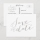Éclat de feuille d'argent faux imprimé | Carte postale de sauvegarde de la date de mariage. Elke Clarke © Autres couleurs disponibles sur www.zazzle.com/monogramgallery. Un simple, mais polyvalent, argent manuscrit script sauvegarde la date pour les mariages ou d'autres occasions spéciales telles que les dîners de répétition, les douches de couple, les célébrations du 25e anniversaire de mariage. La feuille d'argent est un effet de photo imprimé.