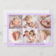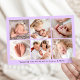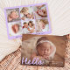 Bienvenue à votre petite fille dans un style sucré avec ce faire-part de naissance photo fantaisiste avec la photo horizontale de votre bébé avec "Hello" affiché dans une superposition de script lavande ludique. Ajoutez le nom de votre bébé, sa date de naissance et ses statistiques sur le devant pour créer un véritable saké personnel. Le dos montre un collage de six photos de carrés avec l'espace ci-dessous pour inclure des noms de famille ou un message sincère. Un choix agréable pour les petites filles ou des thèmes rêvés et d'inspiration pastel.
