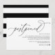 Changez la date ! Annoncez à votre famille et à vos amis le report de votre mariage avec cette carte de changement de date. Elle présente un motif à rayures et une écriture fantaisiste. Personnalisez-la en ajoutant vos noms et d'autres détails. Cette carte de report de mariage sera également parfaite comme annonce de mariage intime.