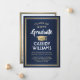 Partagez la joie d'un baccalauréat ou d'un collège avec ces photos personnalisées bleu marine, or et blanc annonces. (CONSEIL EN MATIÈRE DE PLACEMENT D'IMAGE : Une façon simple de centrer une image exactement comme vous voulez est de la rogner avant de la télécharger sur le site Zazzle.) Ce modèle comprend le nom du diplômé, l'année de cours et l'école, ainsi que tout libellé de votre choix, comme les détails de l'invitation du parti, les distinctions spéciales, le titre du diplôme, la citation inspirante préférée, les coordonnées du diplômé, les plans de formation futurs ou le nouveau poste. Tout le texte est simple à personnaliser. Design propose un arrière - plan moderne à l'ombre bleue, une bordure en feuille d'or et une casquette de graduation, une calligraphie de script élégante, une typographie traditionnelle, et une photo de votre choix, comme une image principale ou une image de la cérémonie de début. Veuillez noter que l'or est imprimé en couleur et non en métal. Ces cartes de faire-part de remise de diplômes sont une façon branchée et chic de partager votre fête spéciale avec votre famille et vos amis. Félicitations au diplômé !
