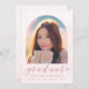 Envoyez à votre famille et à vos amis une carte de faire-part de graduation 2025 personnalisée et florale pour les wow. Ce design modèle moderne comprend une photo en forme d'arche pour vous permettre de passer à la vôtre sur un arrière - plan de lavage à l'aquarelle. En dessous de votre photo est le mot "Graduate" dans la typographie manuscrite moderne et votre nom, lycée et année à personnaliser. Le dos de la carte est assorti d'un lavement à l'aquarelle rose. Conçu par Susan Coffey.