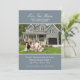 Faire-part mobiles simples et élégantes caractéristiques "Our New Home" titre personnalisé en script, photo de votre nouvelle maison encadrée dans une bordure rayée épingle, texte personnalisé en blanc, et une ardoise bleu / gris couleur arrière - plan. D'autres couleurs sont disponibles dans le magasin Plush Paper et sur demande.