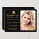 Faire-part Élégant Black Gold Script Photo College Graduation