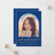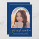 Faire-part Élégant Bleu Arc Or Script photo Graduation