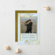 Ces belles cartes de faire-part fiançailles sont une merveilleuse façon de faire savoir à vos amis et à votre famille que vous lierez le noeud. L'élégant design bleu poudreuse présente votre photo dans un cadre doré imitation feuille entouré de boucles et tourbillons dorés ornés. Le titre indique "Nous sommes engagés !" avec de l'espace pour vos noms et une courte note. Le dos est une couleur dorée marbrée profonde.