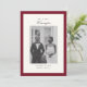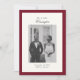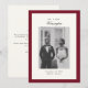 Annoncez votre mariage avec style grâce à notre Elégante Calligraphy Photo Frame Dark Red Mariage Faire-part. Ce design moderne et sophistiqué comprend votre nom de famille en calligraphie élégante, complétant magnifiquement la palette de couleurs rouge et crème blanc. Un modèle photo à l'avant vous permet de présenter un moment de mariage favori, tandis que l'arrière comprend de l'espace pour un message personnalisé. Entièrement personnalisable, cette faire-part est un moyen intemporel de partager vos nouvelles avec vos proches !