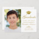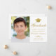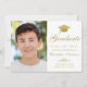 Envoyez à votre famille et à vos amis une carte de graduation photo personnalisée unique pour les wow. Ce design modèle présente Votre photo personnalisée à gauche et à droite un faux casquette de grade d'or avec le mot Graduate, classe/année, nom et autres détails de cérémonie pour personnaliser. Conçu par ©Susan Coffey.