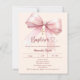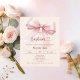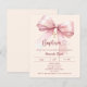 Un fond couleur crème douce et pêche, orné d'un grand ruban rose et d'une croix dorée. Personnalisez et ajoutez un nom et des détails.
