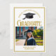 Cette carte de faire-part chic personnalisée avec photo possède un cadre doré élégant autour de votre typographie moderne et casquette de grade formel. Customisez avec votre photo portraitiste préférée du lycée ou de l'université sur cette disposition classe avec une sensation royale.