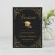 Envoyez à votre famille et à vos amis cette carte élégante de faire-part de remise de diplômes pour les wow. Ce design est composé d'un casquette de couleur or et d'un script sur un arrière - plan noir encadré d'une bordure botanique en faux or filigree. Personnalisez avec vos propres détails, nom, école et année. Conçu par Susan Coffey.