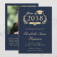 Faire-part Elegant Gold Script Blue Photo College Graduation
