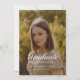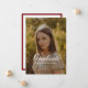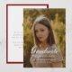 Elegant Graduation Photo Script Coquette Wine Red Announcement Card. Personalize this formal and elegant graduation photo announcement card with graduate's name, year of graduation, school name, graduation photo, and custom message on the back for friends and family.