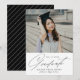 Faire-part de graduation simple avec la photo du diplômé en haut avec "Graduate" affiché dans un script de calligraphie moderne noir ci-dessous sur un arrière - plan blanc. Personnalisez le devant du faire-part de remise de diplômes en ajoutant l'année de remise de diplômes, le nom du diplômé et le nom de l'école. La carte s'inverse pour afficher un motif à bandes en diagonale noir et blanc. Le faire-part de fin d'études 2025 est parfait pour les diplômés du secondaire et du collège.