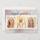 Élégant Faire-part de Graduation Photo Moderne. Ce faire-part de graduation de collage photo en écriture élégante présente une belle aquarelle abstraite arrière - plan de tons neutres de terre avec une parties scintillant en or rose classe sur l'avant et l'arrière. Le verso comprend également un message pour la personnalisation ou simplement laisser vide pour le supprimer. Les éléments correspondants se trouvent dans la collection Rose Gold Parties scintillant Graduation Collection.