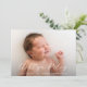 Cette faire-part de naissance personnalisée simple mais élégante dispose d'une photo horizontale pleine image avec un nom de script élégant et une typographie simple. Au fond, une petite photo carré et un espace pour votre texte personnalisé.