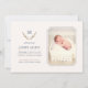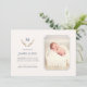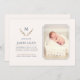 Un élégant faire-part de naissance monogramme pour bébé pour présenter le nouveau membre de votre famille à vos amis et à vos proches. La conception minimale montre une seule photo de votre bébé sur la droite. Toutes les informations du nouveau-né, telles que le nom, le poids et la taille, sont incluses à gauche. Ce design élégant et sophistiqué comprend également le monogramme de votre famille, entouré d'une couronne de feuilles. Le nom de votre famille, le monogramme et la couronne sont également indiqués au verso de la carte de faire-part. Introduire votre nouveau-né avec style, en utilisant cet élégant faire-part de naissance monogramme bébé est un excellent choix pour créer un moment mémorable.