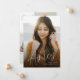 Faire-part de diplôme avec une grande photo et une superposition de script moderne.