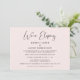 Élégant elopement rose pâle ou petit faire-part mariage et invitation à la réception pour informer la famille et les amis que vous serez marié dans une petite cérémonie de mariage intime, et de les invitation à une réception ou une fête post-mariage. "We're Eloping" est écrit dans un script élégant et vous pouvez ajouter vos noms, date mariage et détails d'invitation à la réception dans une simple typographie moderne.