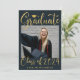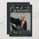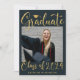 Élégant Script de Parties scintillant d'or sur Blue Chic Photo Graduation Card. Félicitations à la GRAD ! Félicitations pour leur succès bien mérité et célébrez-les avec cette belle carte. Tous les textes sont pré-arrangés pour que vous personnalisiez facilement et rapidement avec vos propres détails.