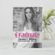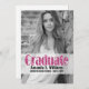 Personnalisez cette carte de faire-part moderne et élégante en parties scintillant rose. Ce joli design présente votre photo comme arrière - plan, le mot Graduate en parties scintillant rose, nom et date. La photo que vous ajoutez a un filtre qui la transforme automatiquement en noir et blanc. Vous pouvez modifier le filtre en cliquant sur le bouton personnaliser. Au verso de la carte, vous pouvez ajouter plus de détails ou supprimer et modifier la couleur de l'arrière - plan.
