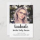 Elégant Rococo Pink Graduate Photo Graduation Faire-part. Design élégant de graduation avec rococo rose ornement motif sur le dos et une photo personnalisée sur le devant. Customisez tout le texte sur la carte et ajoutez votre photo.