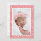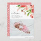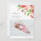 Elégante carte de modèle mignonne avec des illustrations de pastèque rouge et de fruits à grenade avec roses rose pâle et florale, lavande et feuillage vert sur le devant. L'arrière révèle un arrière - plan de pois rose corail. Il y a 2 photos de votre nouveau-né qui peuvent être ajoutées sur cette carte (avant et arrière). Carte parfaite pour annoncer l'arrivée de votre nouveau bébé avec ses statistiques de naissance. Idéal pour le bébé garçon et la fille. Parfait pour les saisons d'été et de printemps !
