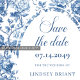 Faire-part Elegant Royal Blue Toile Save the Date Wedding Car